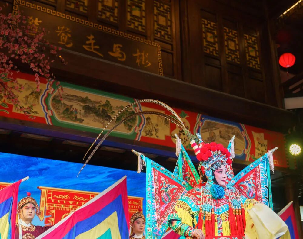 戏剧演员在鸳鸯走马楼内演出