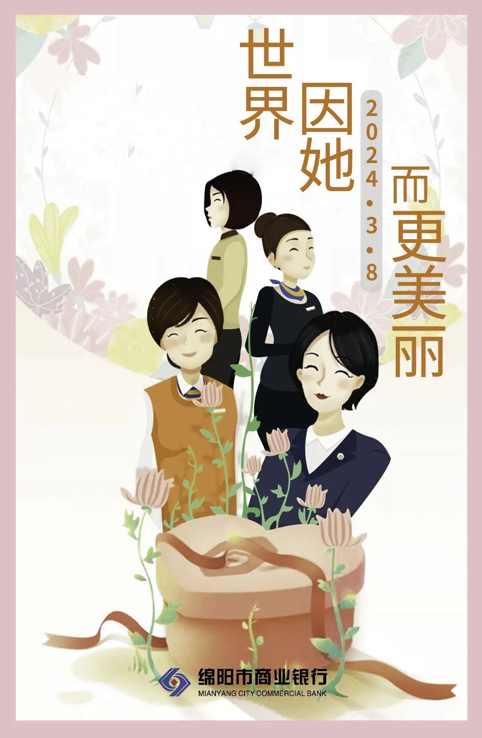 妇女节是你们的节日,是全社会对女性贡献和价值的肯定。你们是银行最宝贵的财富,是银行发展不可或缺的力量。感谢你们为银行付出的辛勤努力和汗水,感谢你们为银行事业做出的卓越贡献!