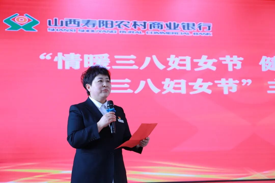 寿阳农商银行纪委书记、监事长曹旭艳代表总行党委向全行女同胞致以节日的问候和美好的祝愿,并邀请美年大健康主任医师开展“关爱女性健康”知识讲座。