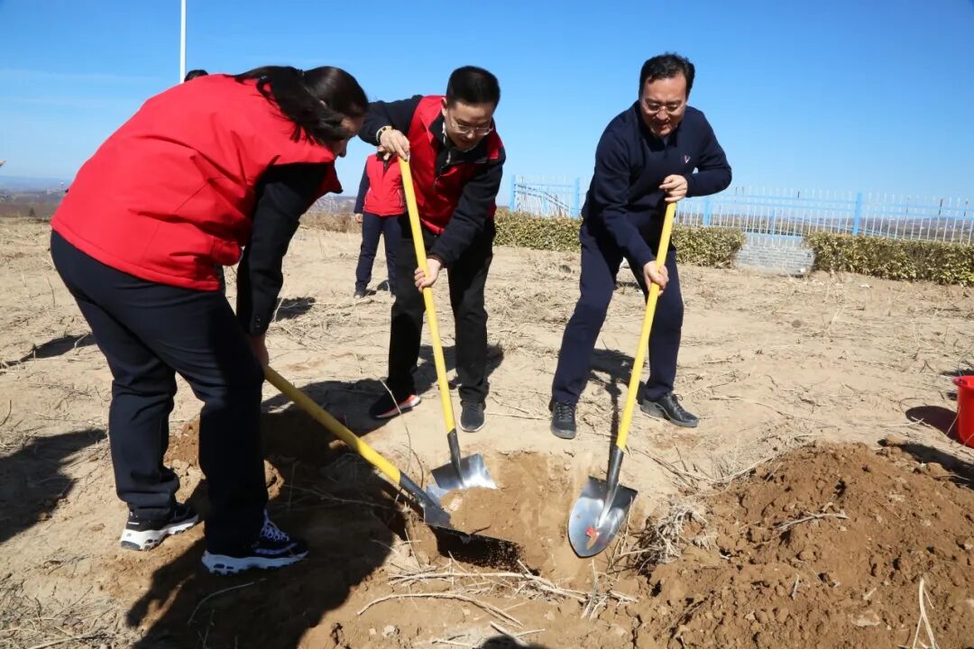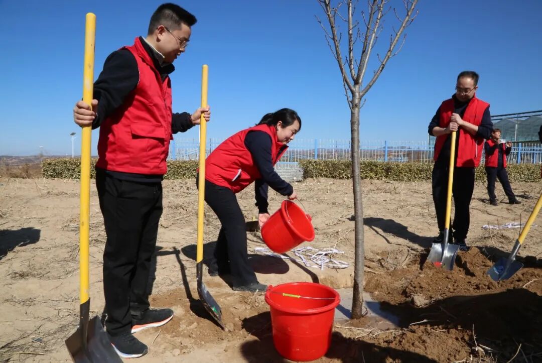 活动当天,阳光明媚,春风和煦。现场一片热火朝天的景象,参与活动的职工个个精神饱满,热情高涨,干劲十足。大家分工合作,配合默契,拿着铁锹、水桶等工具,或两人一组,或三五成群,挥锹铲土、分苗定植、扶苗填坑、提水浇灌,现场一片繁忙而有序的景象。树苗在大家的呵护下,逐渐站稳了脚跟,它们将在这片土地上茁壮成长,为大地增添一抹生机。