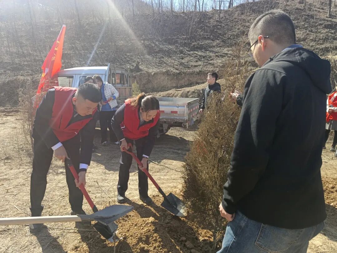 春回大地万物苏,植树添绿正当时。为践行“绿水青山就是金山银山”的绿色发展理念,发挥党员先锋模范作用,在第46个植树节来临之际,乡宁农商银行第四党支部联合枣岭乡党委机关党支部开展“植树增绿 党员先行”义务植树主题党日活动。