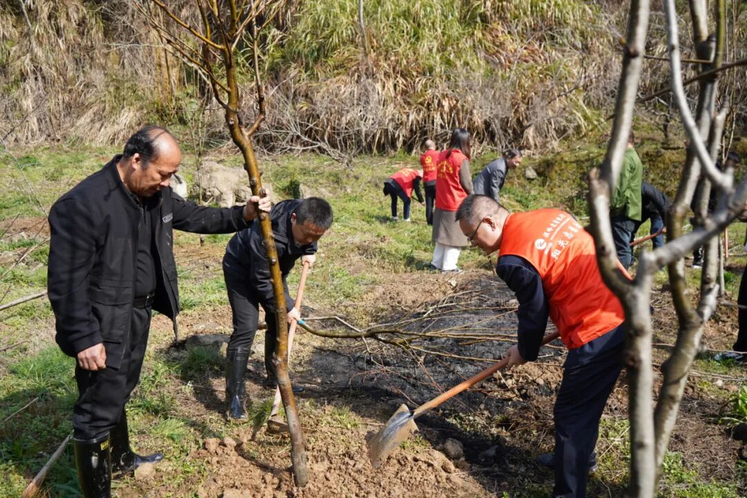 活动现场,伴随着明媚的春光,来自温岭农商银行和城东街道的党员志愿者们挥舞着铁锹,齐心协力挖坑、扶苗、培土,每一个环节都一丝不苟。在大家的共同努力下,几十株树苗扎根土壤,迎风挺立,焕发着勃勃生机。