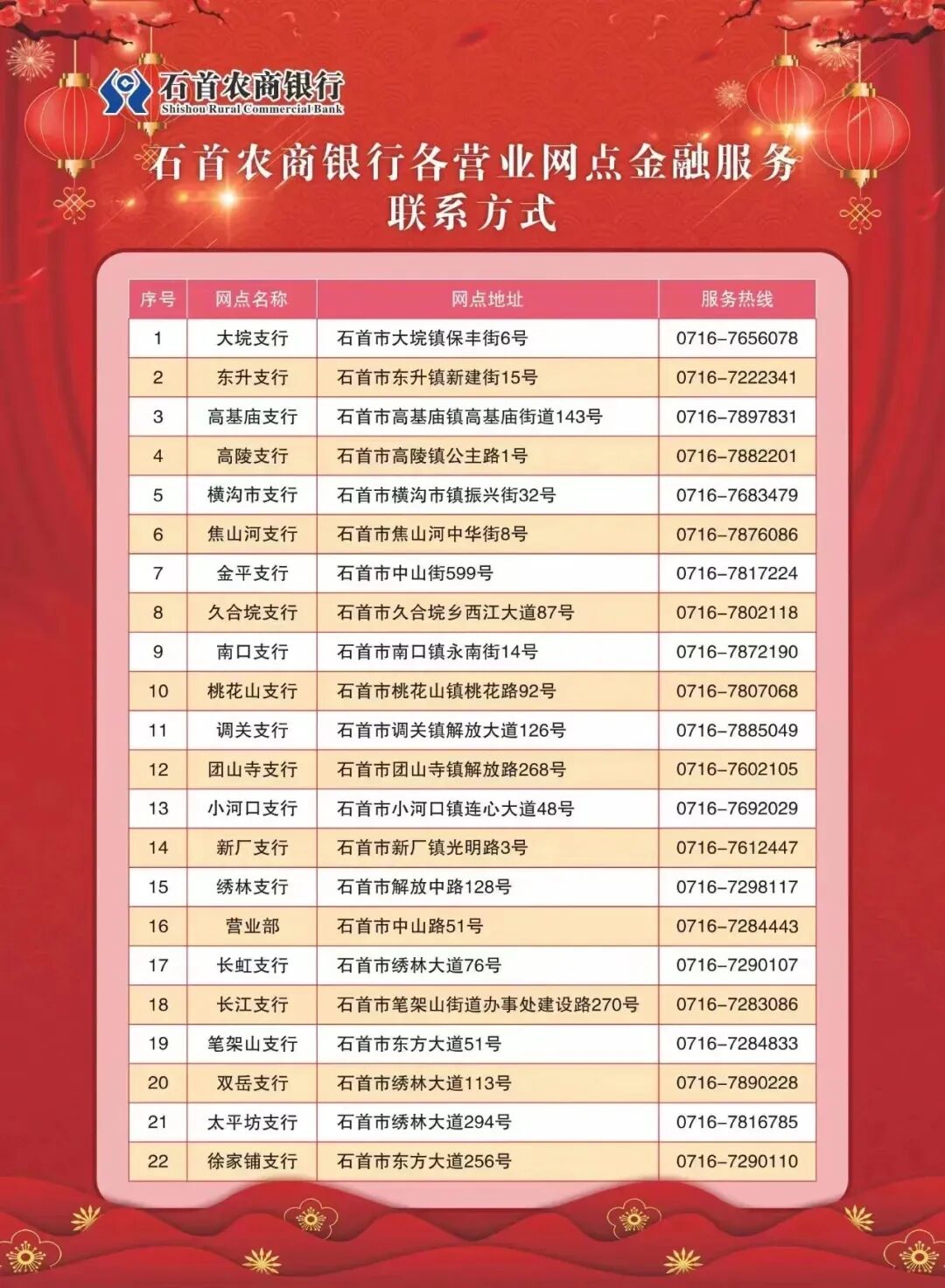 文章内容来源于公众号:石首农商银行,点此可查看原文,内容版权归相关企业所有,本网站仅供交流学习。若涉及版权问题或存在侵权情况,请及时与我们联系,我们将第一时间进行删除处理。