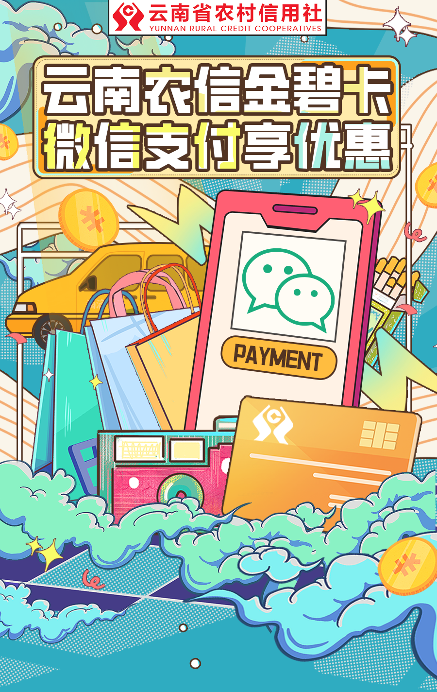 *微信支付时使用云南农信信用卡消费满10.01元时可用。理财、少数特定商户不可用。