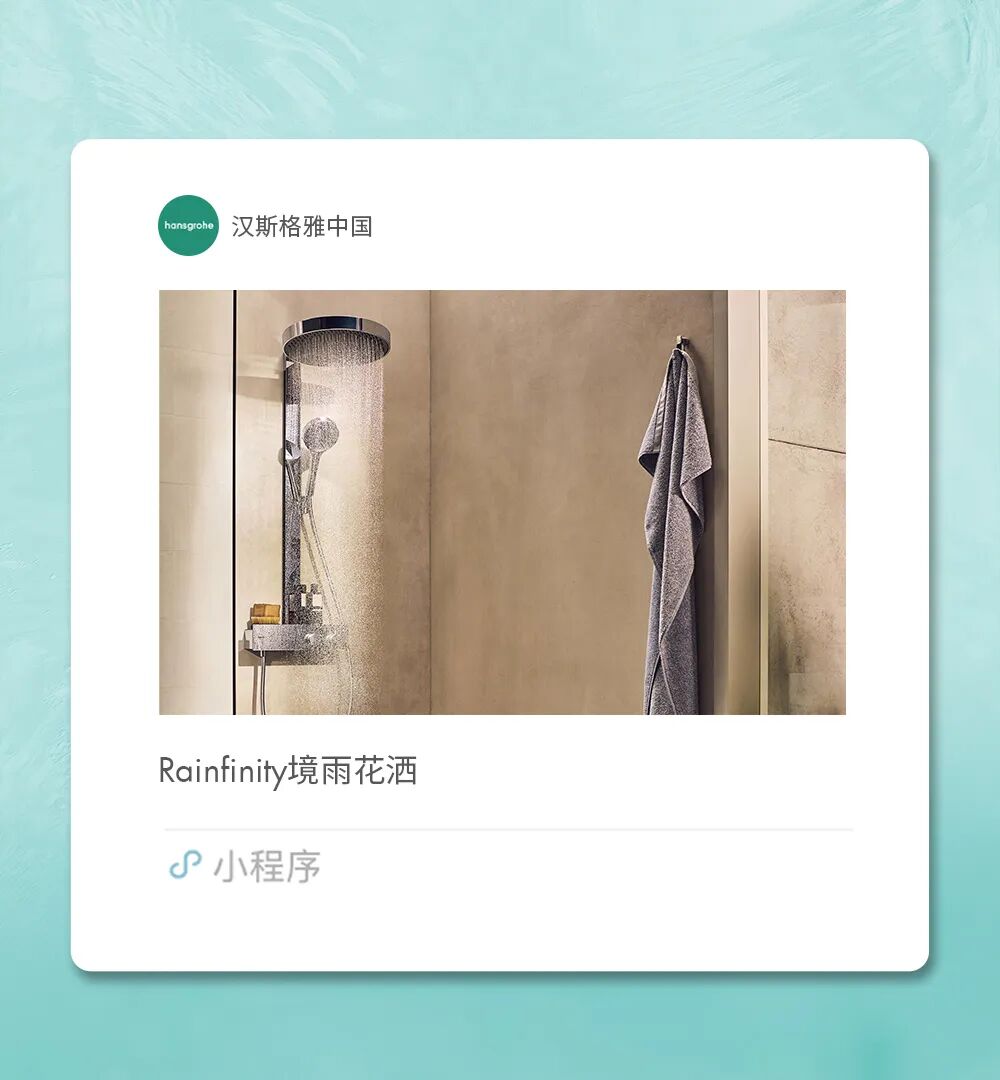 文章内容来源于公众号:汉斯格雅hansgrohe,点此可查看原文,内容版权归相关企业所有,本网站仅供交流学习。若涉及版权问题或存在侵权情况,请及时与我们联系,我们将第一时间进行删除处理。