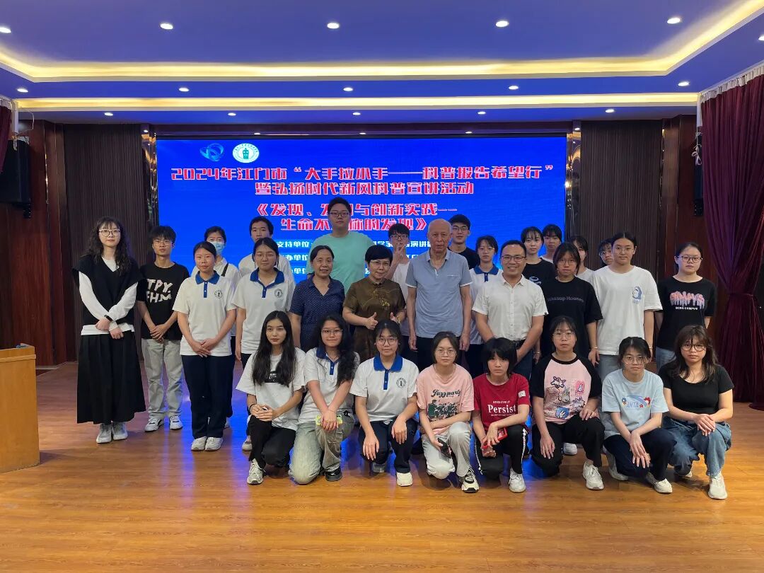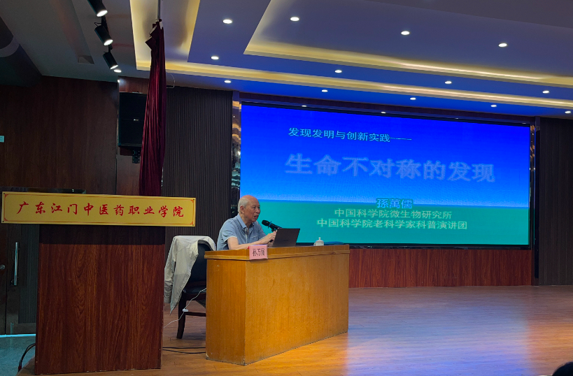 3月29日,江门市"大手拉小手——科普报告希望行"暨弘扬时代新风科普宣讲活动走进我校,中国科学院老科学家科普讲解团专家、博士生导师孙万儒教授为我校师生带来专题科普知识讲座《发现、发明与创新实践——生命不对称的发现》。