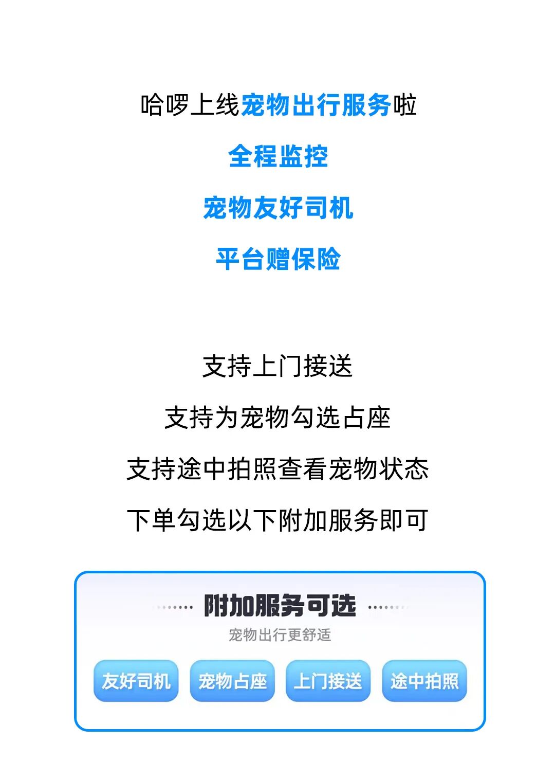 摘要:哈啰上线宠物出行服务啦!全程监控,宠物友好司机,平台赠保险...