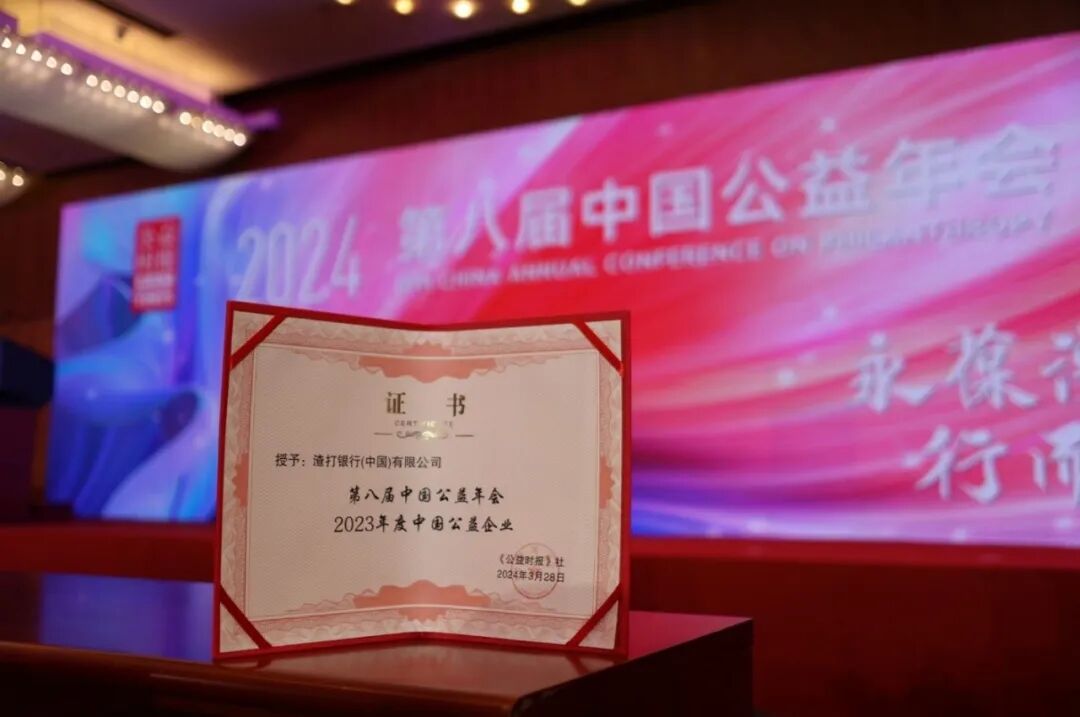 3月28日,由《公益时报》主办的第八届中国公益年会在清华大学举办,渣打银行(中国)有限公司(“渣打中国”)获得“2023年度中国公益企业”殊荣。同样获得此荣誉的还有阿里巴巴、腾讯、安踏、百胜、大众、长江商学院等企业。《公益时报》是由中华人民共和国民政部主管、中国社会工作协会主办的第一份全国性、综合性公益类报纸。