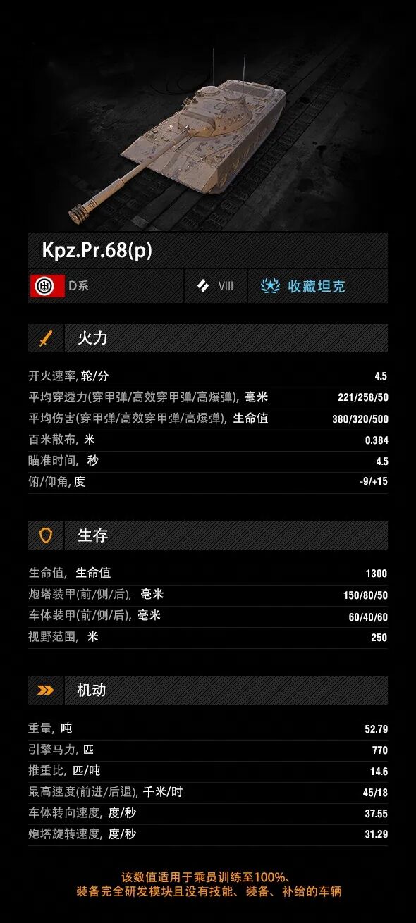 良好的装甲和优秀的DPM使VIII级Kpz.Pr.68(P)成为理想的前线支援选手。对于队友的重型坦克来说,有这样的帮手可谓如虎添翼!