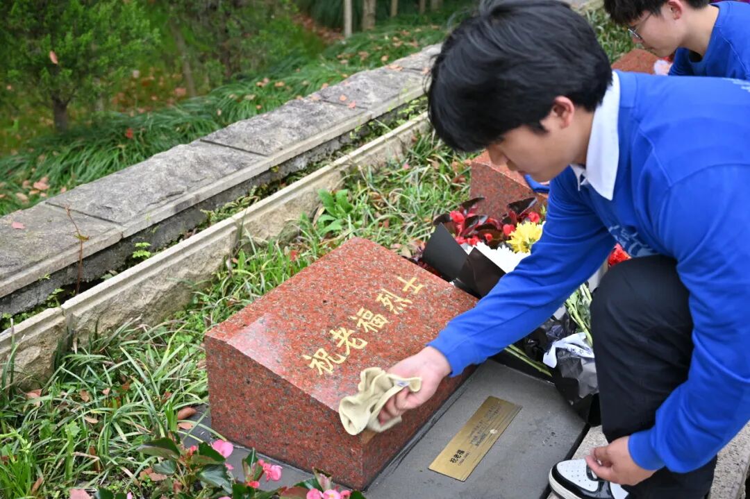 全体师生在纪念碑前肃穆而立,向革命先烈默哀,为纪念碑和革命烈士墓敬献花篮和鲜花,并擦拭墓碑。学生代表宣读祭文、诵读奉贤烈士名单、诗歌朗诵,表达上应青年对革命先烈的敬仰之情。