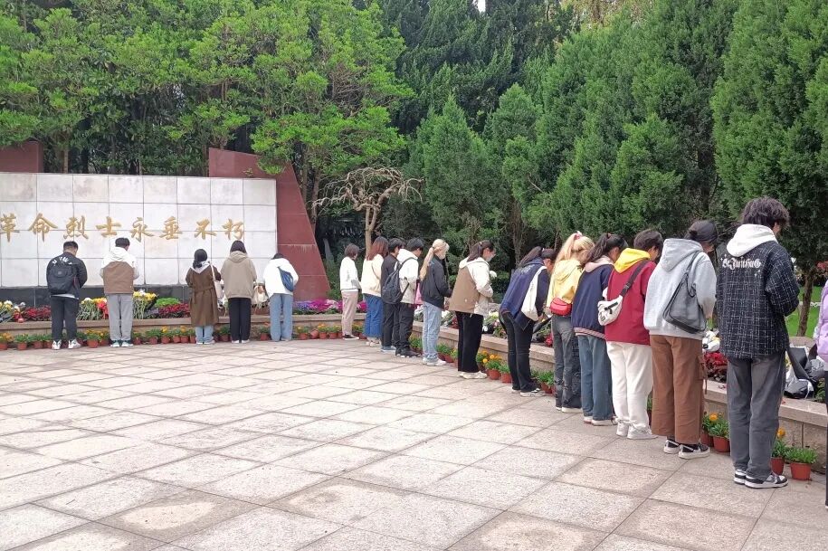 外国语学院党员代表和入党积极分子前往奉贤区烈士陵园开展清明祭扫活动,向革命先烈们表达深切怀念和崇高敬意。