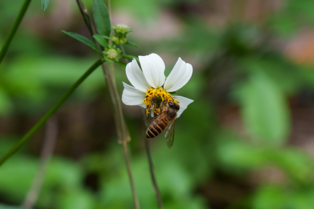 蜜蜂倏尔停落花间