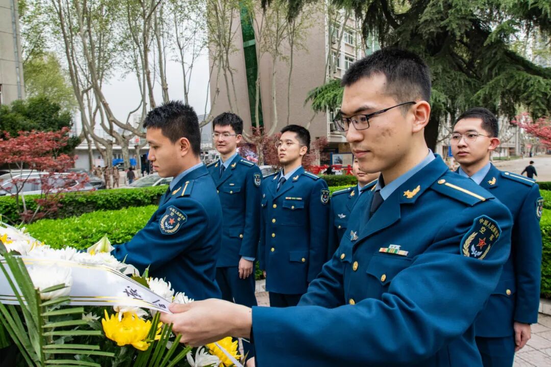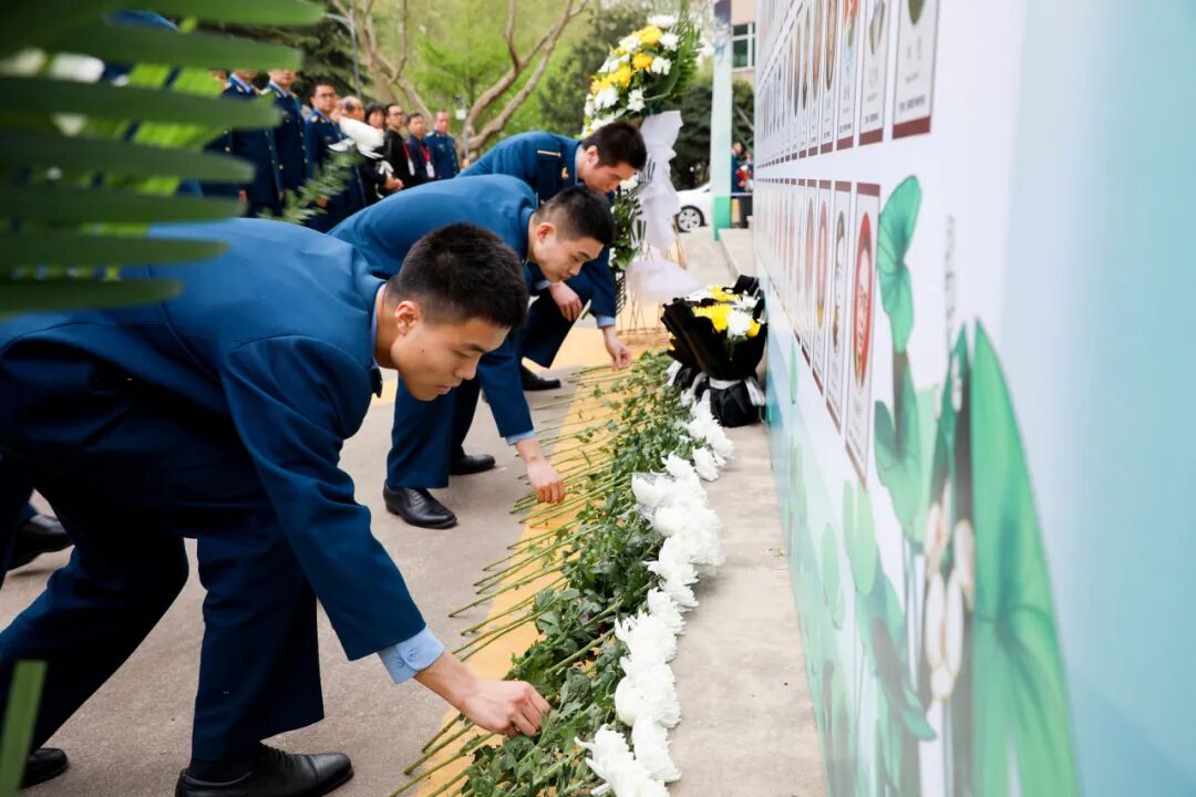 官兵学员们纷纷敬献花束