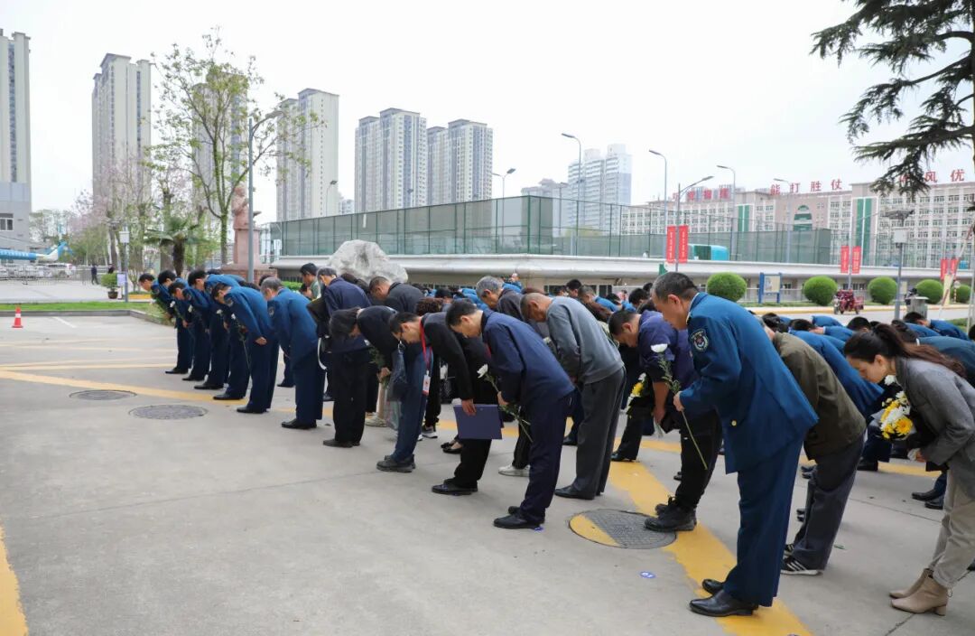 全体人员肃穆站立、脱帽默哀