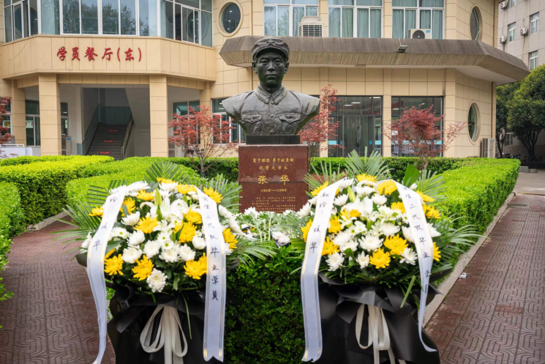 向张华烈士雕像敬献鲜花及花篮