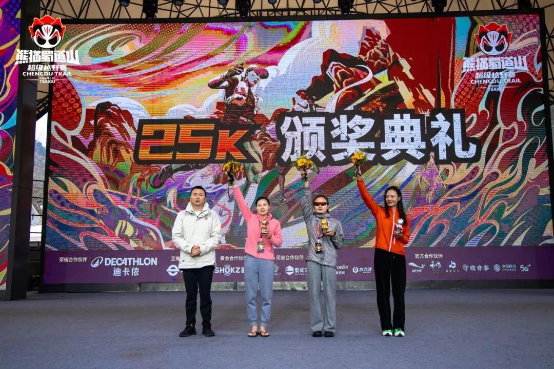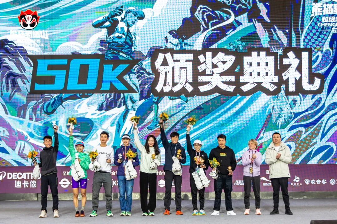 昨天拿下熊猫蜀道山50K女子组冠军 ,李颖今天“梅开二度”,以02:53:24的成绩干净利落地拿下了第二名。万伦发挥则稳中有升,耗时02:59:27夺得季军!