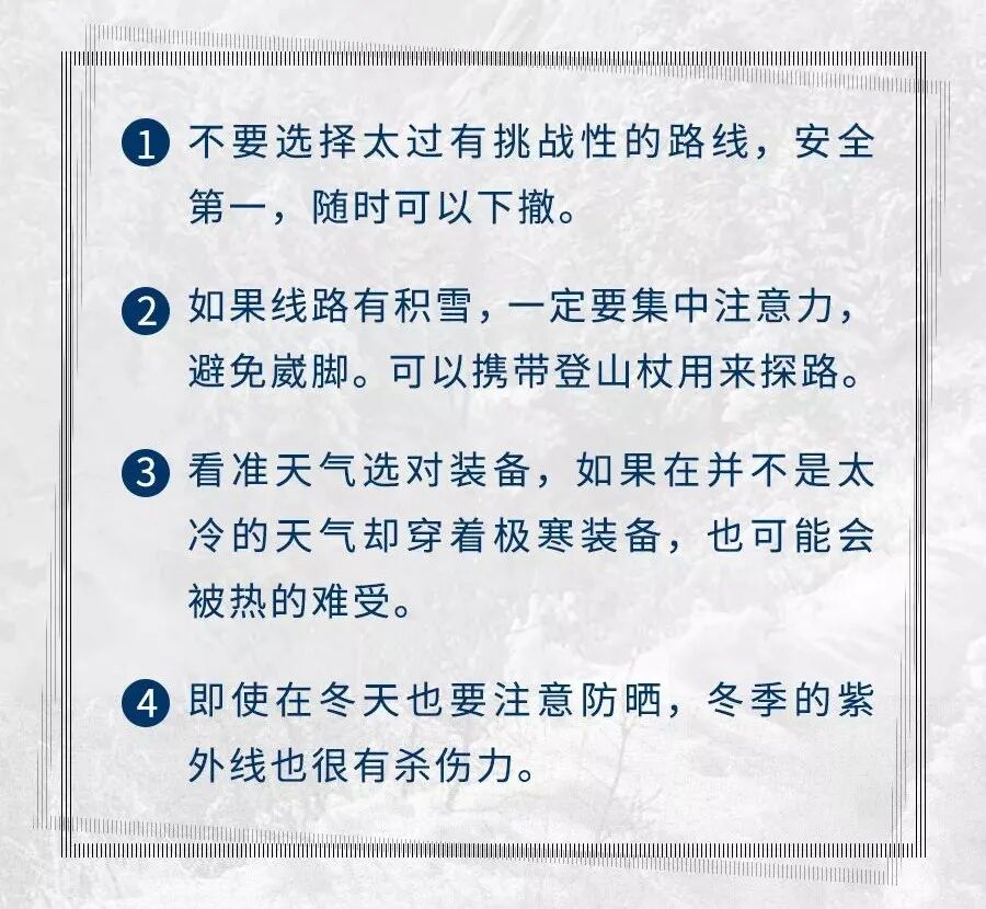 大部分人穿纯棉内衣就进山,一运动浑身大汗,一停下来浑身冰凉。随后就是失温,一定要有良好的排汗内衣。