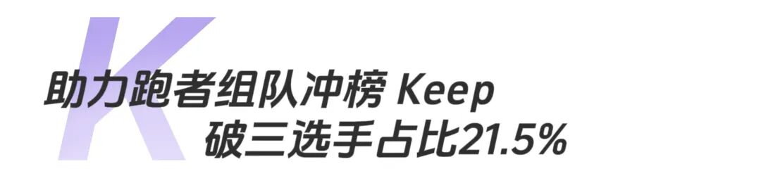 本次无锡马拉松比赛作为全国马拉松锦标赛的第一站,同时也是国内唯一一场巴黎奥运会选拔赛,吸引了全国20多万优秀跑者报名,最终在参赛的3万多名选手中,近7000人参与了Keep线上冲榜活动,成绩破三(完赛成绩在3小时之内)的用户数量占比高达21.5%,成绩在4小时以内人数占比更是高达70%以上,其中Keep用户最好成绩为2:10:54,在全国排名第十四。