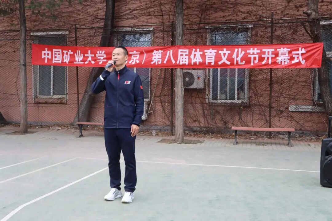 体育教研部主任杨三军老师为第八届体育文化节致开幕辞。杨主任对体育文化节的举办表示祝贺并向体育文化节的筹备及工作人员表示感谢,希望广大同学以本次体育文化节为契机,更加深入地了解体育、热爱体育,在体育运动中享受乐趣、增强体质。