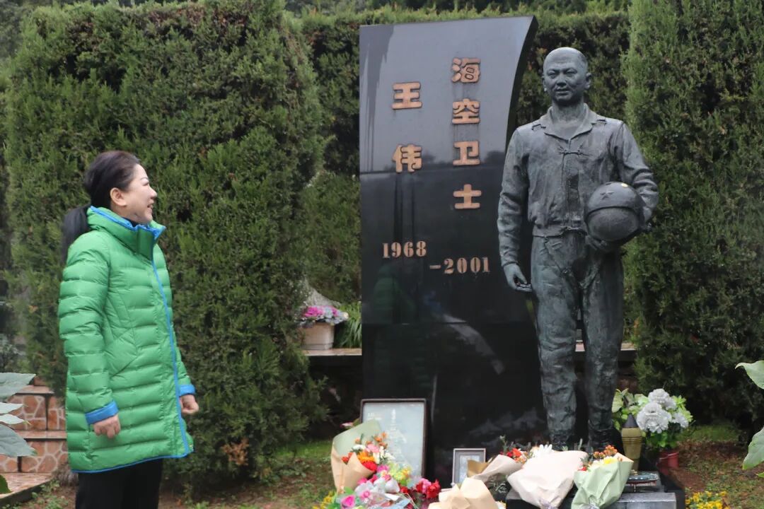 来到“海空卫士”王伟的纪念碑前