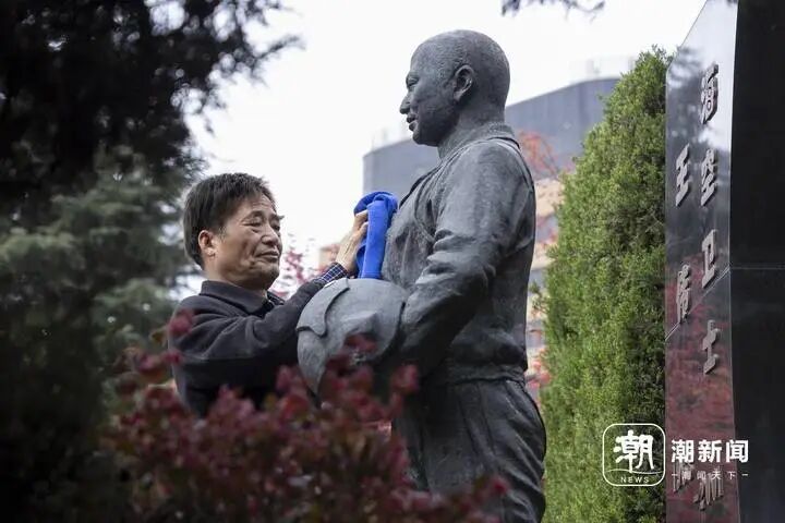 葛汉昌用携带的蓝色毛巾仔细擦拭着墓碑