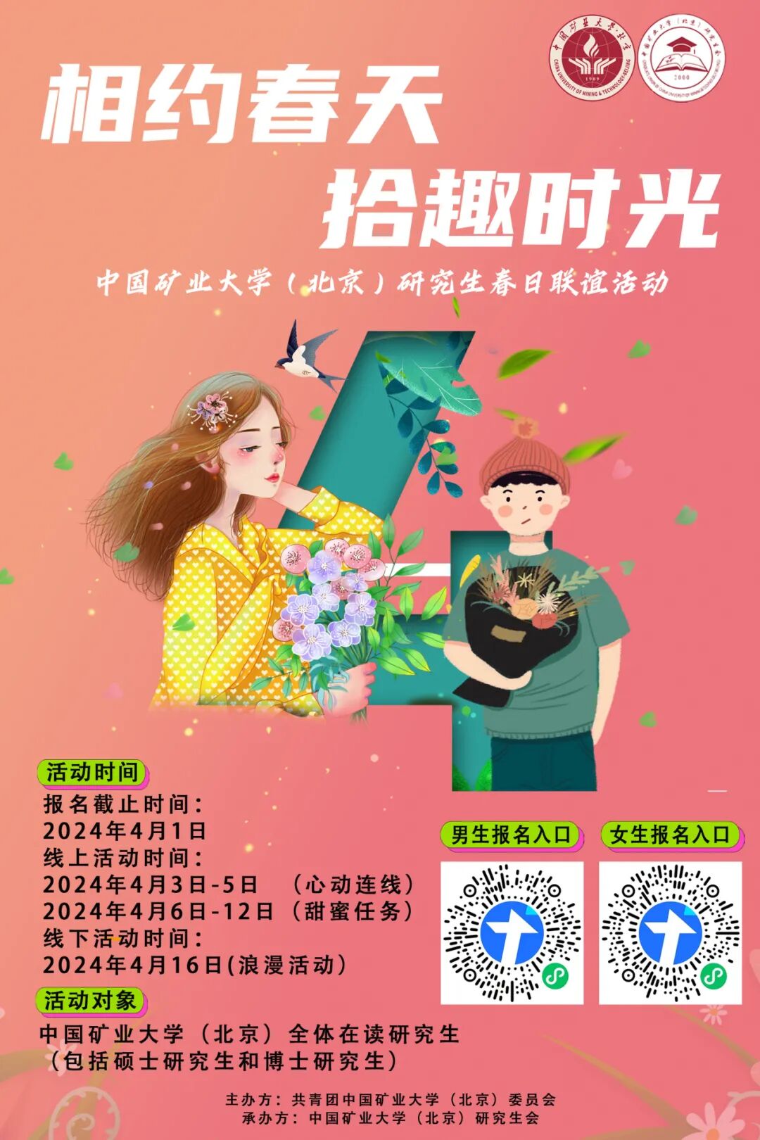 “相约春天 拾趣时光”是“线上+线下”的研究生联谊活动。这是一场关于相遇、关于心跳的旅程。在这趟旅程中,我们为你提供了更多遇到TA的可能,更合的磁场,更强的吸引力,还有那个更想懂你的TA。