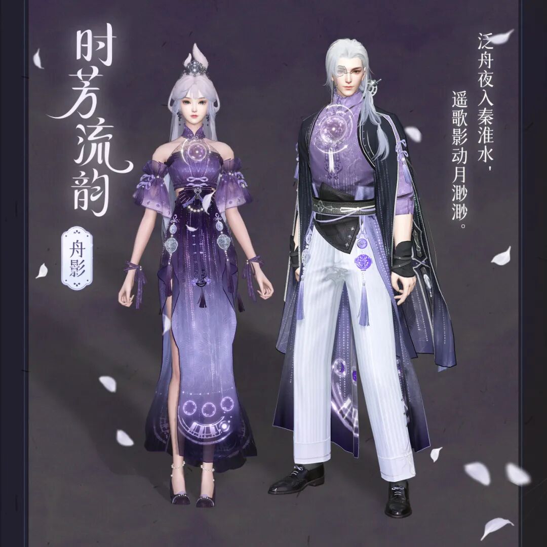 泛舟夜入秦淮水,遥歌影动月渺渺。【时芳流韵·舟影】暗紫色的裙摆随风飘荡,再配上绝美的银发,神秘而优雅。穿上它,让人仿佛置身月色笼罩下的江畔小舟之上,分外宁静。