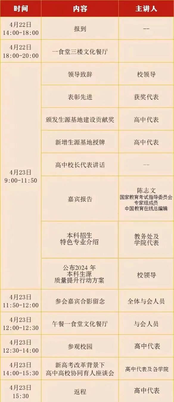为此,我们将深化与高级中学之间的交流与合作,构建高校与高级中学之间的沟通桥梁,实现资源共享、优势互补,共同打造一个协商研讨、共谋发展的平台。我校定于2024年4月23日举办首届高校高中协同育人校长论坛,旨在探讨新高考背景下高校与高级中学协同育人机制的完善与发展。活动详细事宜如下: