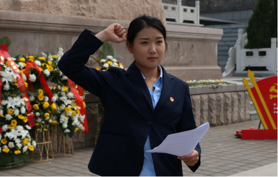 下午1点,全体同学乘车到达章丘烈士陵园。庄重肃穆的烈士纪念碑诉说着无数革命战士保家卫国的热血故事。在烈士纪念碑前,校学生会主席、青马学员代表李奕萱以“缅怀革命先烈,弘扬爱国主义精神”为主题进行宣讲,并带领全体同学在烈士纪念碑前宣誓:我们将继承烈士们的遗志,发扬勇往直前,无坚不摧的革命精神,抛弃懒惰与柔弱,告别散漫与消极,以我壮志豪情,创造崭新未来;以我火红青春,建设锦绣中华!
