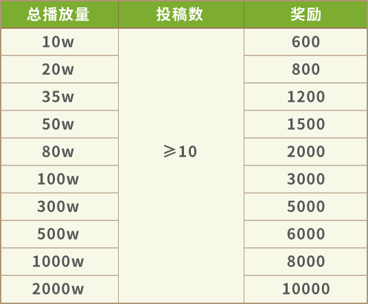 播放量即可按照结束时播放量梯度结算