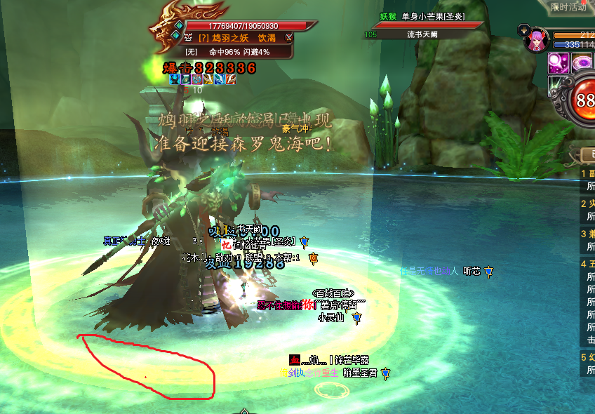 MO元草恢复了就丢一个。(新区备选方案,怪出来后,上负面,先打几下,BB脚下出大圈,所有人跑出大圈,出圈后远程外围打,近战职业等大圈消失后近身打。)