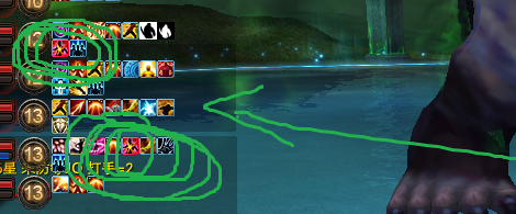 注意,这个怪,有夜影状态,所以8米外攻击几乎没有伤害,如图我红圈标示的深绿色圈圈。