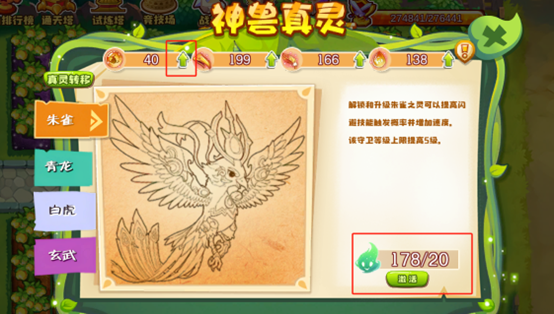 A10:激活真灵后,点击上方神兽材料升级箭头,四个部位均升到10级后自动成为1阶