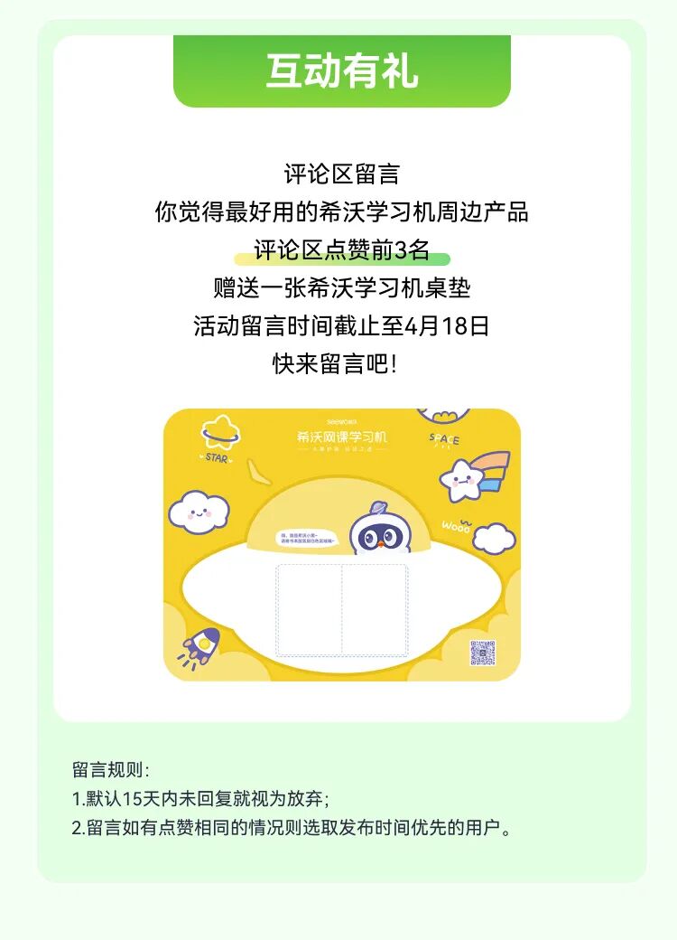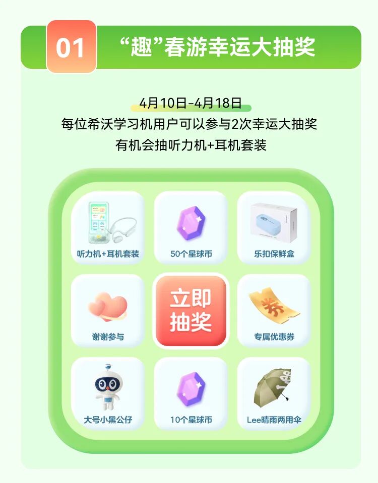 摘要:希沃学习机用户福利来了!!4月10日-18日参与抽奖,有机会获得听力机+耳机套装哦~
