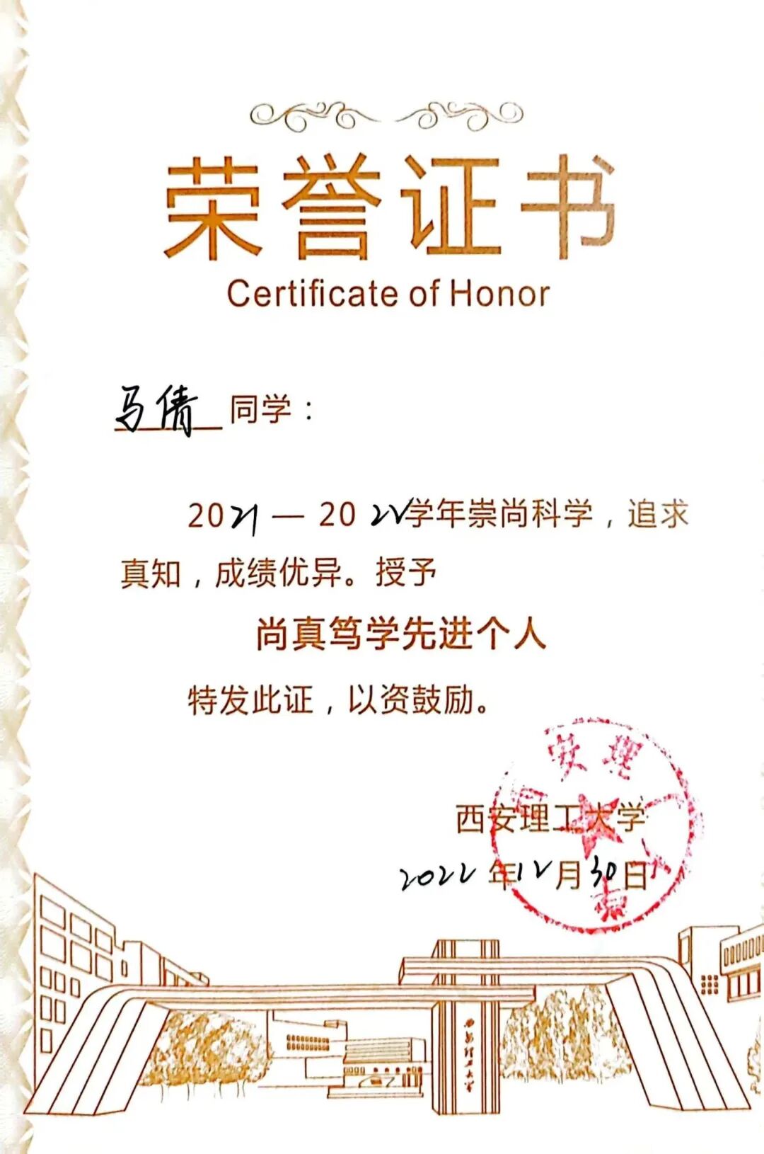 在校期间,马倩学业成绩、综测成绩均位列全年级第一,在科研方面屡创佳绩。在她看来,优异成绩的背后,也是她追逐真理之光的过程。![]()