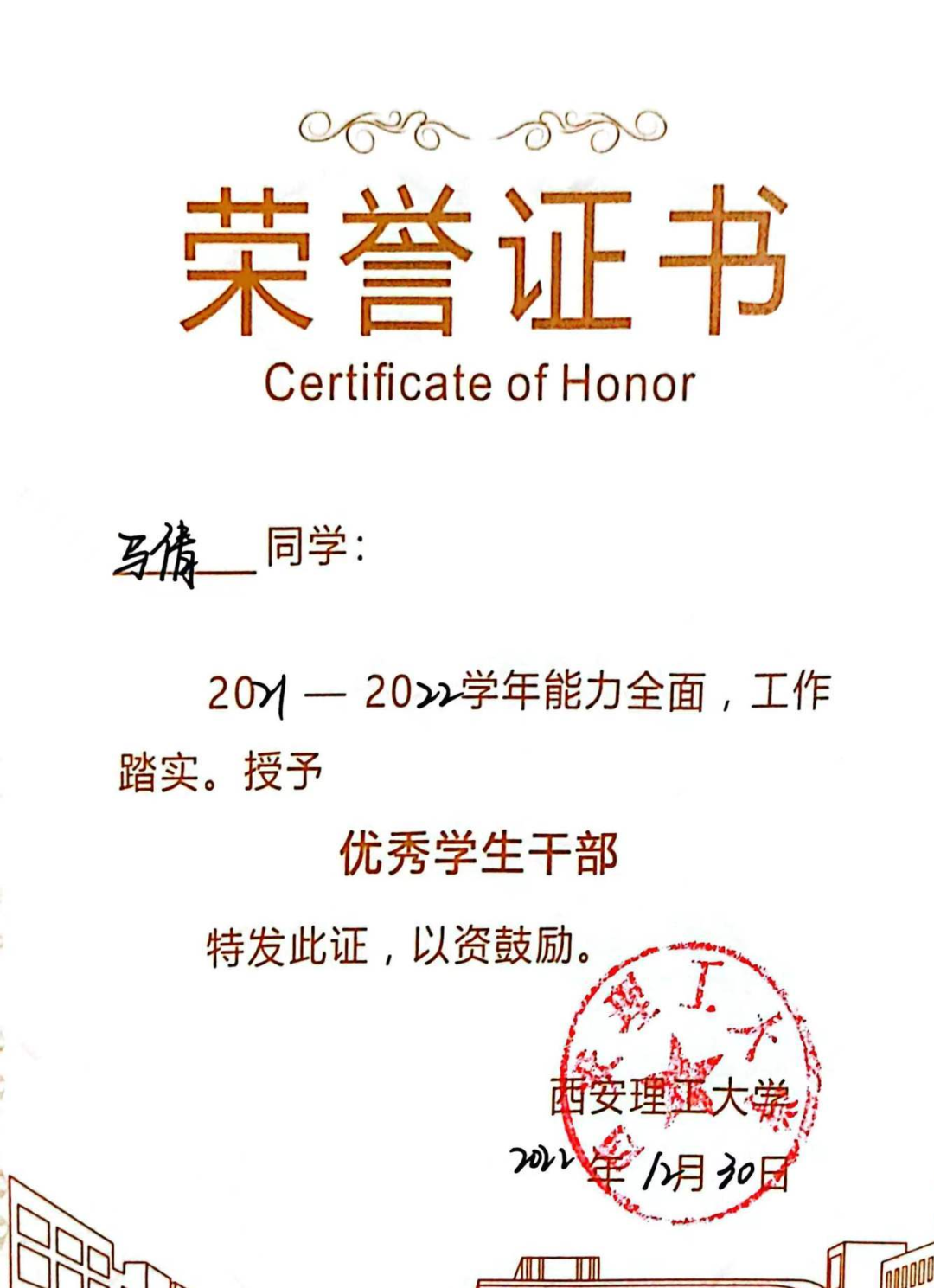 “推介中华文明,传播传统文化,让游客通过我的介绍有着时光穿越般的体验,努力用热情和专业体现出我们西安大学生志愿者的良好形象。”每一次讲解前,马倩总是及时更新知识点,为游客全方位阐述出千年的丝路文化与各民族交融交汇的历史印记。“讲解的过程中,我得到了许多认同感,也认识到了自己能给社会带来一点帮助,让我明白了志愿服务的意义所在。”作为优秀学生干部,马倩担负起了老师与学生、学校与企业之间的联系桥梁。在她看来,无论参与何种志愿活动,都要相信它是高尚的、有意义的。“班干部其实是一个去‘看见和点亮’的角色,要做的就是‘把同学们身上优势的亮光给点起来’。“就是这些光,这些我所服务的同学们他们身上发出的光,支持着我在学生工作这条路上走到现在。”马倩坦言,“当我在努力帮助大家的同时,其实,我才是被治愈的那一个。”对于如何调整学习与学生工作、志愿活动之间的关系,马倩认为,在繁忙的日常学习生活中,平衡好学习与工作实属不易,但更重要的是学会合理规划自己的时间,提高学习的效率,脚踏实地,全面发展。作为大学生来说,学习是主业,但是并非需要把所有的时间都花在基础课学习上,提前规划好学习任务所需的时间后,将剩余时间用于科技竞赛、志愿活动或者实践实习等,更能提高我们的竞争力。马倩习惯在学习、工作和活动之中设置优先级,一件一件来,做好每一项工作。“明确哪些是最需要优先完成的任务,比如上学期末,学生工作总结汇报恰巧遇到了考试周和竞赛,理性平和的心态尤为重要。利用碎片化时间搜集整理汇报素材及思路,白天整合化的时间可以用来复习和科研,制作总结PPT的任务则可以在休息时穿插进行。总之,合理做出自己的时间规划,然后保质保量地去完成,就会不断得到满足感,进入一个高效循环圈。”![]()