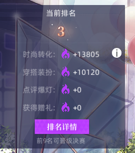 •参赛后时装周大赛界面当前排名显示界面优化,优化后能够更直观地看到赛会积分获取情况。