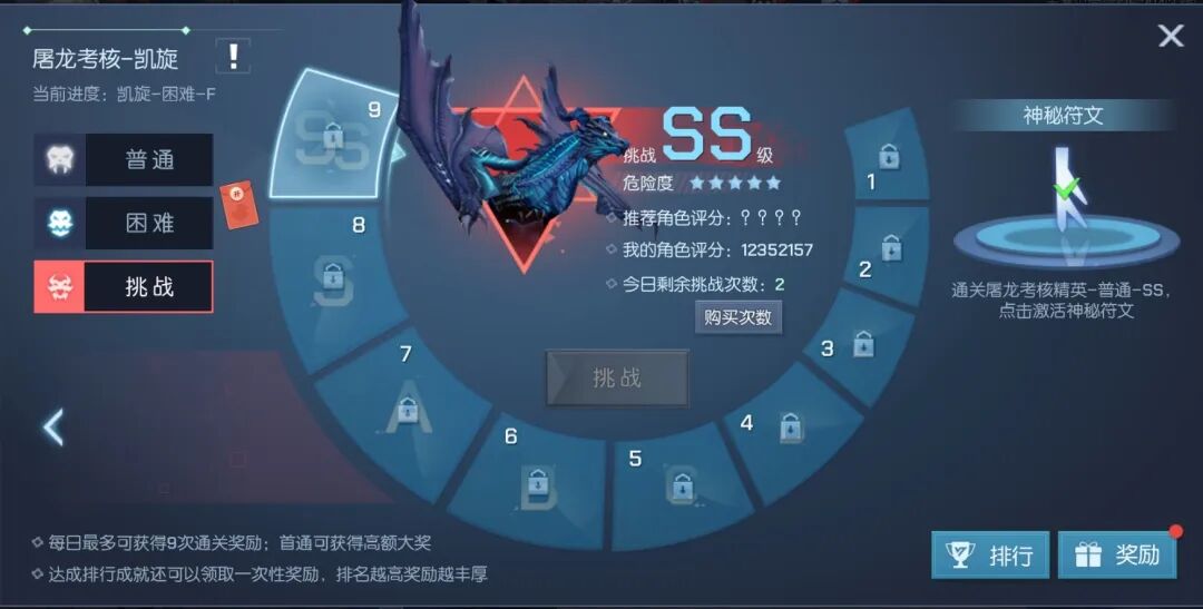 用来测试实力的屠龙考核,大家都进入到哪一关了呢?本周更新之后,屠龙考核将开放全新的凯旋难度!成功通关屠龙考核荣耀-挑战-SS难度的卡塞尔精英可继续冲击更高的难度哦!
