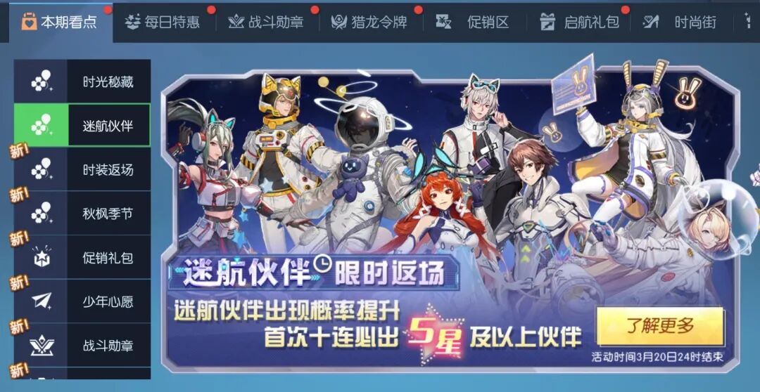 迷航系列伙伴限时返场啦!3月14日更新后-3月20日24时,迷航系列伙伴将开启限时返场和限时兑换!