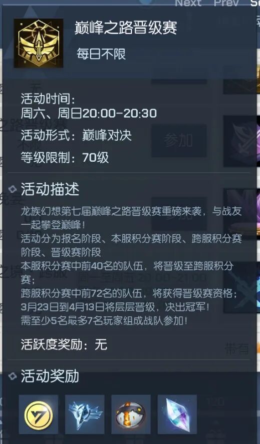 参与跨服积分赛可获得限时称号·永恒之世的归望、绝版勋章·巅峰之上Ⅶ、巅峰补给箱、项链·重礼之华等超值奖励,每个玩家可领取一次。