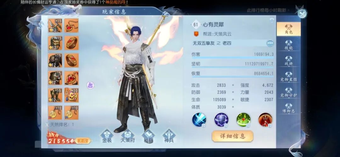 我们刀剑的口号:想杀我先战过我大哥(相随哥)这一关!天策风云是一个团结友爱的帮会,区里氛围也很好!游戏主要是生活的调剂,主打一个开心,很高兴认识一群志同道合的朋友。