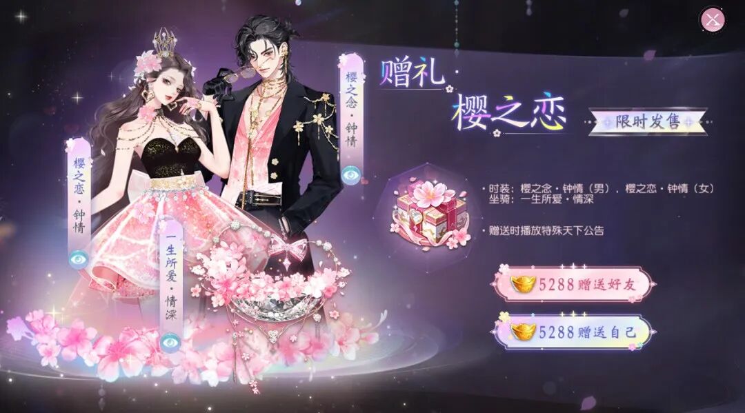 双儿还为少侠们准备了2024白色情人节限定豪华礼包“赠礼·樱之恋”限时发售,内含成套新时装与新坐骑,以更优惠的价格将情人节限定外观赠与心上人。这一次特殊天下公告为你准备,赠送豪华礼包就可以将心意向天下侠士们广而告之!樱华十里,邀你同赏美景,作为无双世界最具浪漫色彩的情人礼,快快送给你的那个TA!