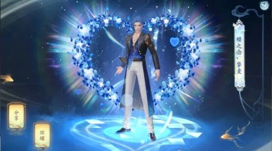 同时还有新外观变色时装“樱之恋·挚爱”和坐骑“一生所爱·唯你”,皆可从黄金锦绣轮中进行抽取!女款上衣为深邃的蓝色,还与男款蓝色衬衫互相呼应,短裙长拖尾的设计也与飘逸的长款西装紧紧相扣,樱蓝发色显出了独特的气质,整体的蓝色系更为少侠们增添了神秘华贵的风采!
