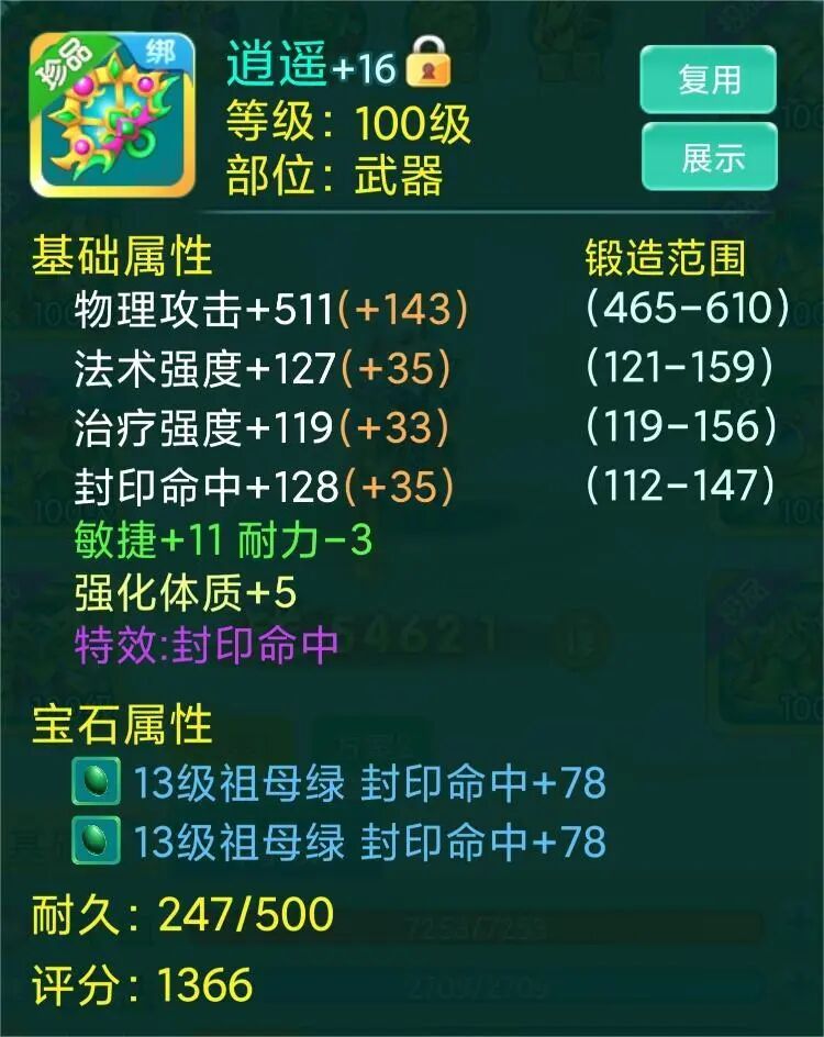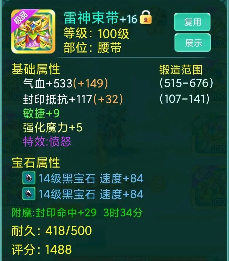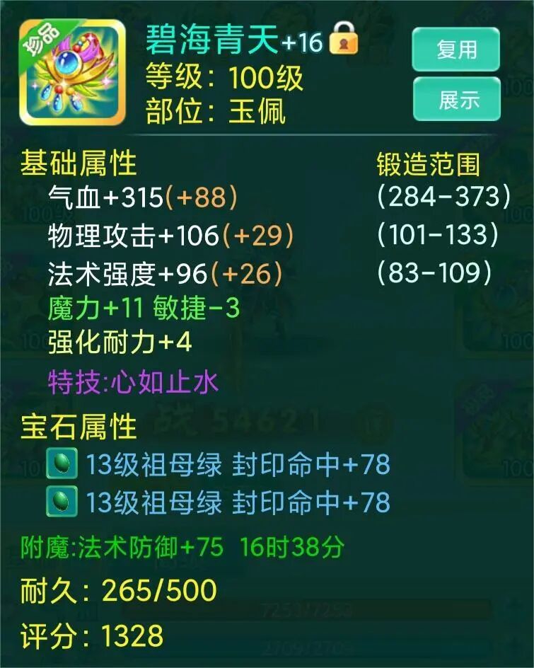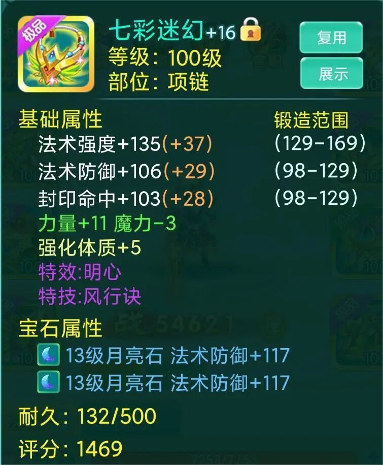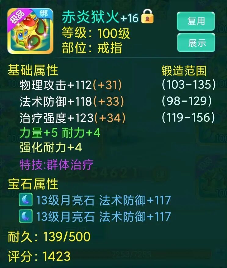 整套装备看下来,宝石安排的都是13级、14级,想必少侠也是花费了老大心思了吧,若是队伍里能有这样一位辅助,队友岂不是能毫无顾虑地输出