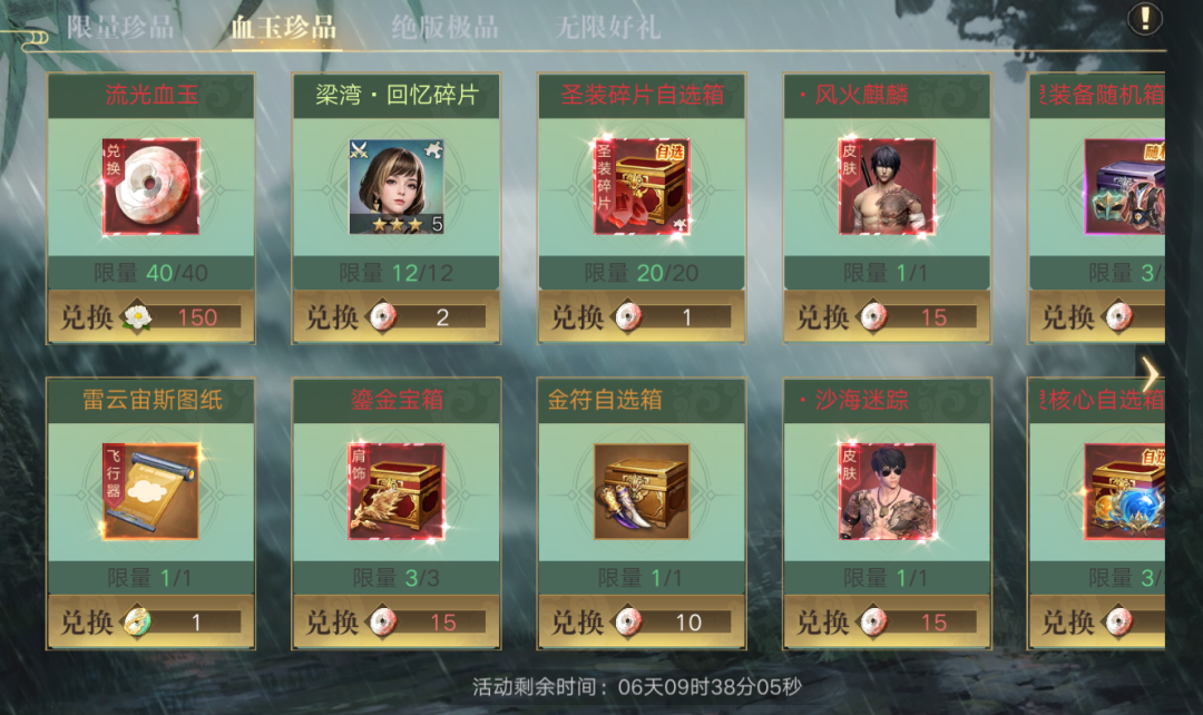 获取方法:泼水宝库-兑换商店-血玉珍品