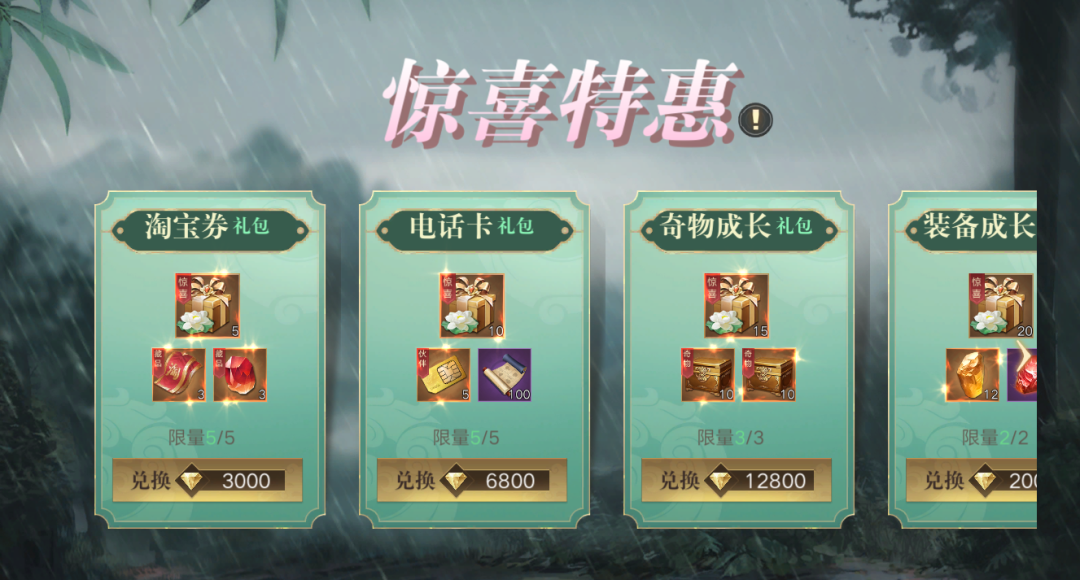 活动限时金钻礼包,礼包种类囊括“淘宝券、电话卡、奇物成长、装备成长、载具核心、珍稀血清、鬼玺成长、武器强化、圣装碎片”等多种礼包种类,样式繁多,应有尽有!