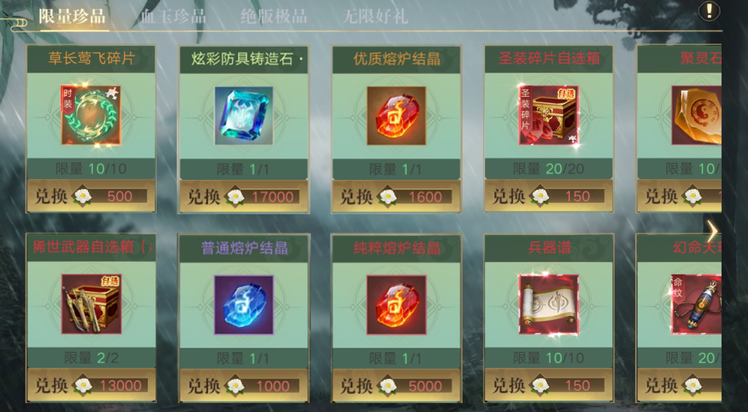 活动商店限时开启!全新领域【草长莺飞】、全新飞行器【雷云宙斯】、稀世武器自选箱(8转)开放兑换!活动兑币更能兑换炫彩防具铸造石·鬼骑、熔炉结晶、粱湾·回忆碎片、载具核心自选箱、圣装碎片自选箱、鎏金宝箱、伙伴时装、直升丹等等珍稀道具,更多道具,快来选购吧~