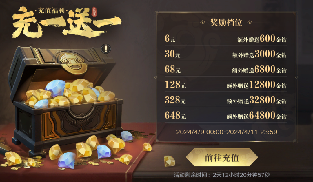 【充值双倍:充一送一 充值送金钻】