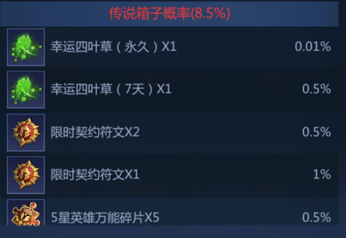 4.宝箱刷新的概率及开启后获得的奖励概率如下:
