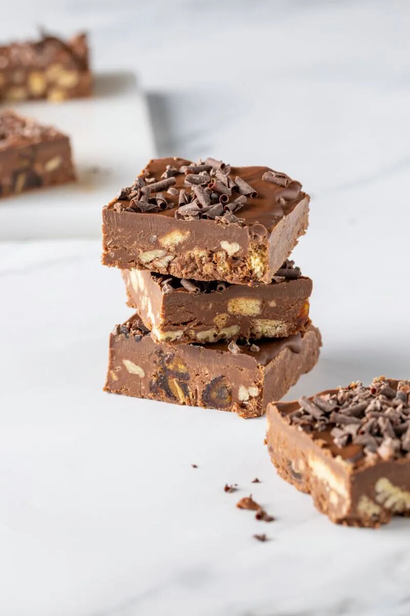 这款纯素食Tiffin主要风味来自嘉利宝NXT植物奶巧克力,温和的奶油风味夹着核桃碎、干果和饼干,整个成品看起来都是巧克力的色泽,值得回味。